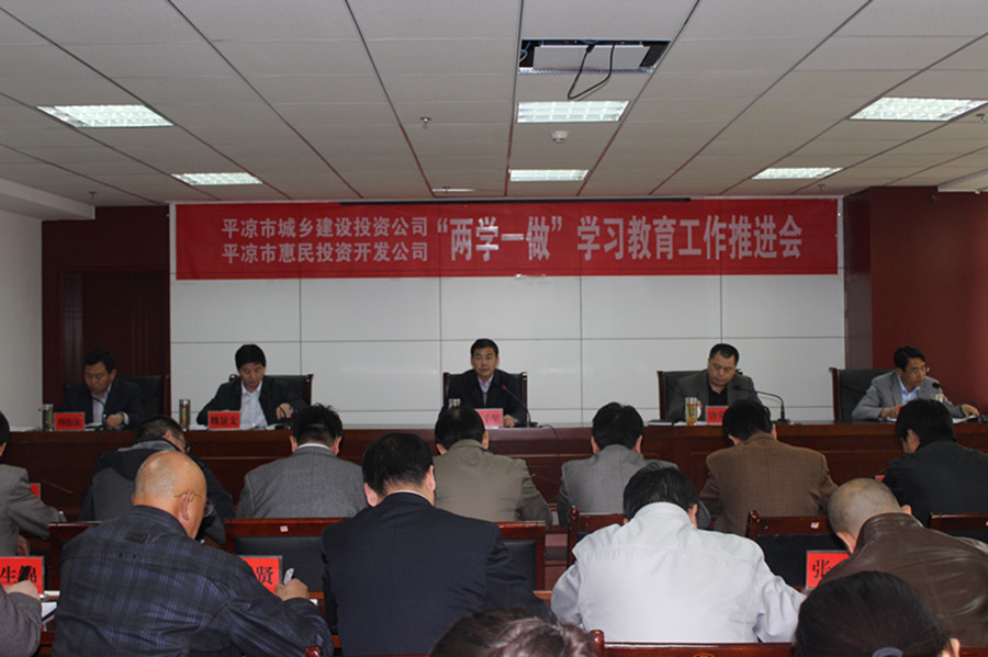 4月25日下午,平凉市惠民投资开发有限责任公司党委“两学一做”学习教育工作推进会召开。会议学习贯彻中央“两学一做”学习教育座谈会和省、市委“两学一做”学习教育推进会精神,对公司“两学一做”学习教育进行安排部署。公司党委书记、董事长马千里主持会并作了重要讲话,党委副书记、总经理唐常宁对公司学习教育作了具体安排,副总经理魏显文传达了中央和省、市委关于“两学一做”学习教育的有关会议和领导讲话精神,副总经理马新平、柳振源及公司副部长(下属公司副总经理)以上干部、全体党员参加了会议。