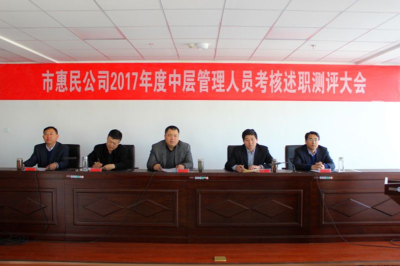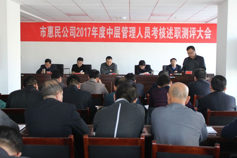 1月10日下午,市惠民公司召开2017年度中层管理人员考核述职测评大会。会议由党委副书记、总经理唐常宁主持,副总经理魏显文、郑忠军、马新平、柳振源及公司中层管理人员共计24人参加了会议。