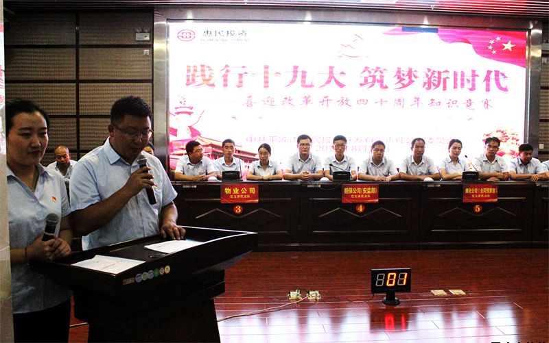 8月14日下午,惠民公司在工商联大厦5楼会议室举办了“践行十九大•筑梦新时代”喜迎改革开放四十周年知识竞赛活动。公司党委书记、董事长唐常宁,副总经理魏显文、郑忠军、马新平、柳振源,总工程师高健出席活动,公司中层以上管理人员及全体党员,共计60余人参加活动。