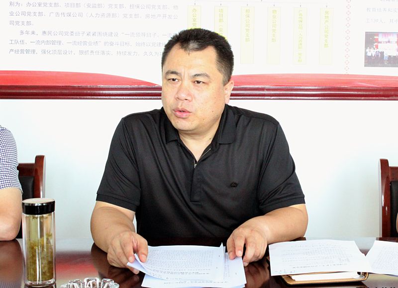 8月16日,惠民公司党委书记、董事长唐常宁主持召开了党委中心组(扩大)学习会议,传达学习市委四届六次全体会议暨全市生态环境保护和非公有制经济发展大会精神,集体学习郑德荣等9名全国优秀共产党员和全省优秀共产党员先进事迹。副总经理魏显文、郑忠军、马新平、柳振源,总工程师高健及各部室、下属公司负责人参加了会议。