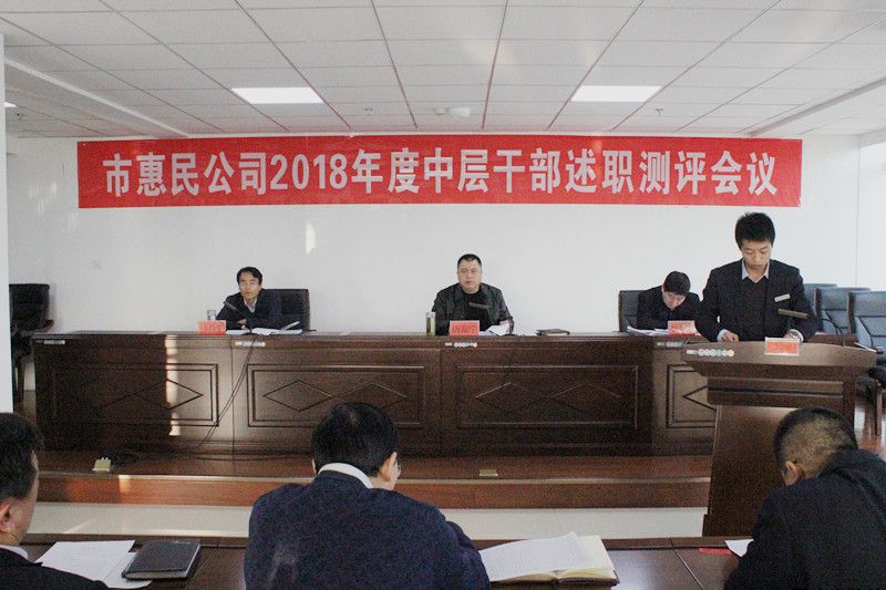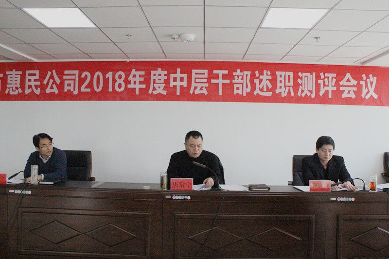 1月25日,市惠民公司召开2018年度中层干部述职测评会议。会议由党委书记、董事长唐常宁主持,副总经理魏显文、马新平及公司中层干部,共计28人参加会议。