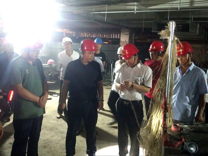 马千里一行先后实地查看了新北嘉园外墙真石漆配色效果、室外配套滤水层施工工艺及地下车库安装工程施工情况,在地下车库施工作业区,详细询问了消防给水管道、通风风管等分项工程的施工工艺。