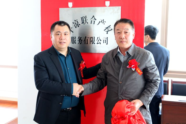平凉市城乡建设投资有限责任公司党委副书记、总经理唐常宁,甘肃省产权交易所股份有限公司董事长安涛为平凉联合产权服务有限公司揭牌。