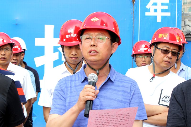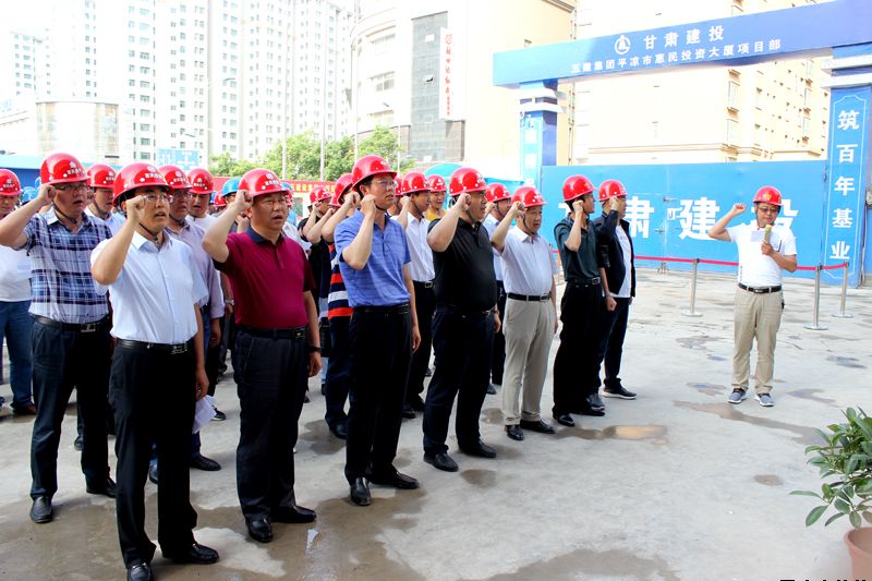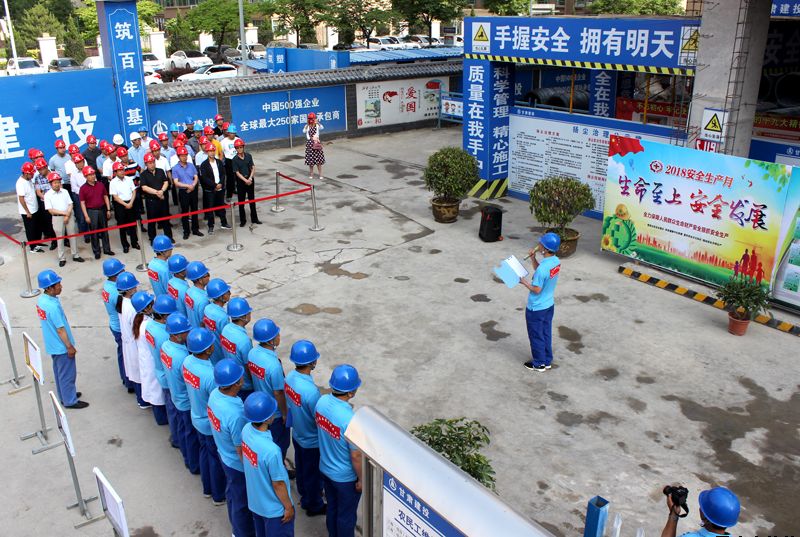 为深入贯彻中央、国务院及省市关于加强安全生产工作的决策部署,大力弘扬“生命至上、安全发展”的思想,结合公司安全生产“大干一百天”行动,6月20日上午,公司在惠民投资大厦建筑工地开展2018年度“安全生产月”活动。公司党委书记、董事长唐常宁,市建管局副局长田晓东一行,副总经理郑忠军、马新平、柳振源,总工程师高健,相关中层以上管理人员、施工单位负责人及监理单位负责人60余人参加本次活动。