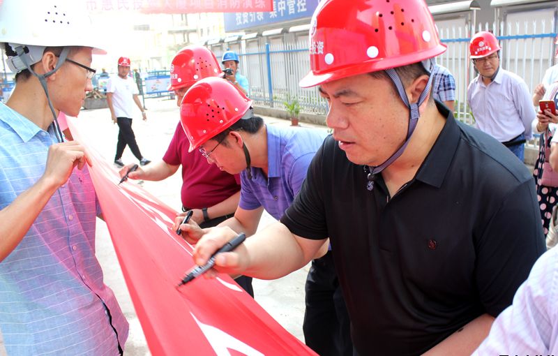 本次活动由公司副总经理马新平主持,房地产公司配合安监部组织实施,通过安全生产活动宣誓、活动签名、悬挂横幅标语、参观宣传展牌、观摩消防应急演练、观摩项目建设工地等活动进行开展。市建管局副局长田晓东对本次活动进行点评并给予了肯定,公司党委书记、董事长唐常宁作了重要讲话。