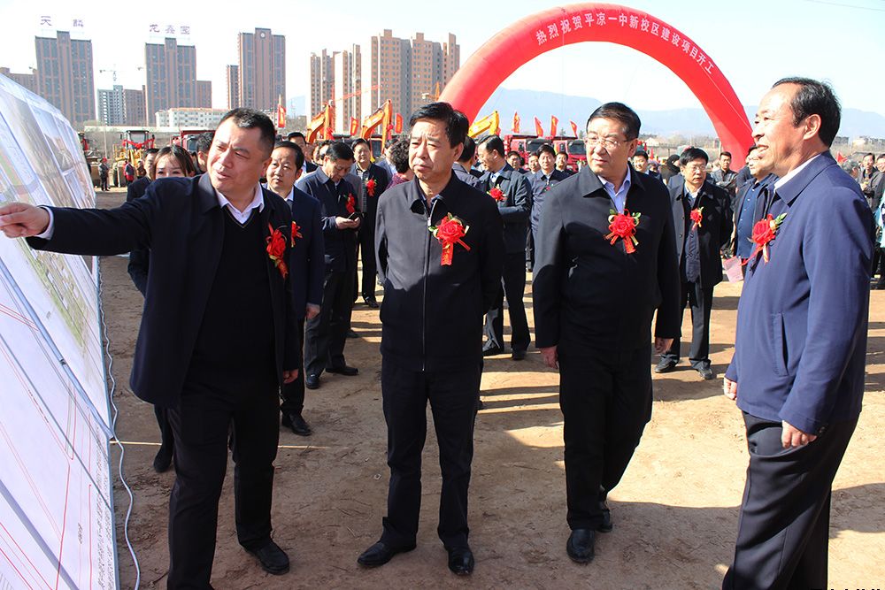 开工仪式现场,市教育局党组书记、局长牛启寿,平凉市惠民投资开发有限责任公司党委书记、董事长唐常宁分别介绍了平凉一中新校区规划及建设情况。