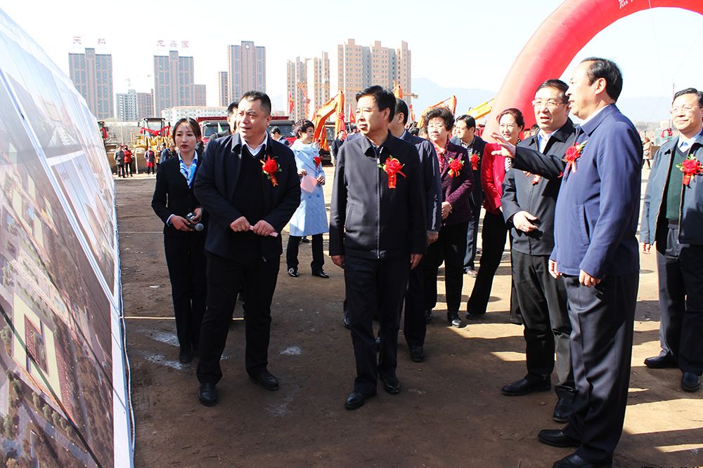 出席开工仪式的全体领导嘉宾还现场观摩了崇文书院小区一期(配建平凉一中新校区)项目展示和市惠民公司在建项目展板,就公司项目建设工作进行指导。