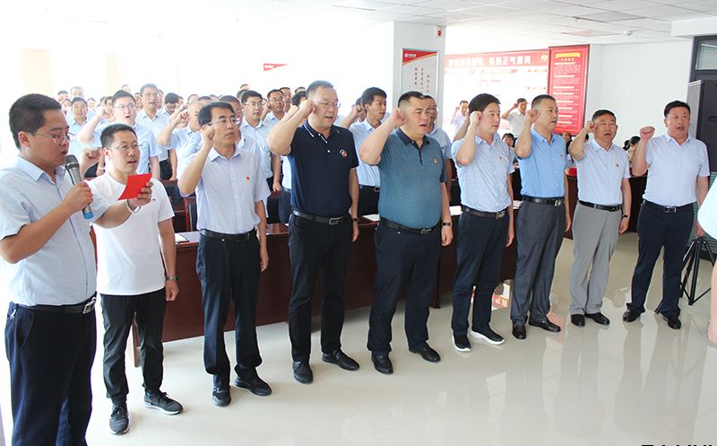 会上,各有关党支部书记为新吸纳党员佩戴了党徽,新党员进行了入党宣誓,全体党员重温入党誓词;表彰了先进党支部和优秀共产党员。