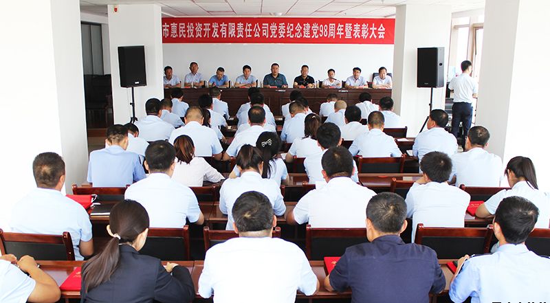 7月1日,市惠民公司党委纪念建党98周年暨表彰大会召开,缅怀党的光辉历史,表彰先进,对今后党建工作进行了安排部署。公司党委书记、董事长唐常宁出席会议并作重要讲话,公司党委委员、总经理胡红训主持会议,公司副总经理魏显文、王徐周、郑忠军、马新平、柳振源,总工程师高健,总经济师王国太,中层干部、全体党员共计60余人参加会议。