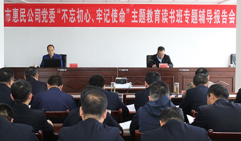 9月19日下午,市惠民公司邀请市委党校教务科副主任、副教授李银福同志作专题辅导,公司党委委员、总经理胡红训主持会议。副总经理柳振源,总工程师高健,各党支部书记,各部室、下属公司负责人及全体党员参加会议。