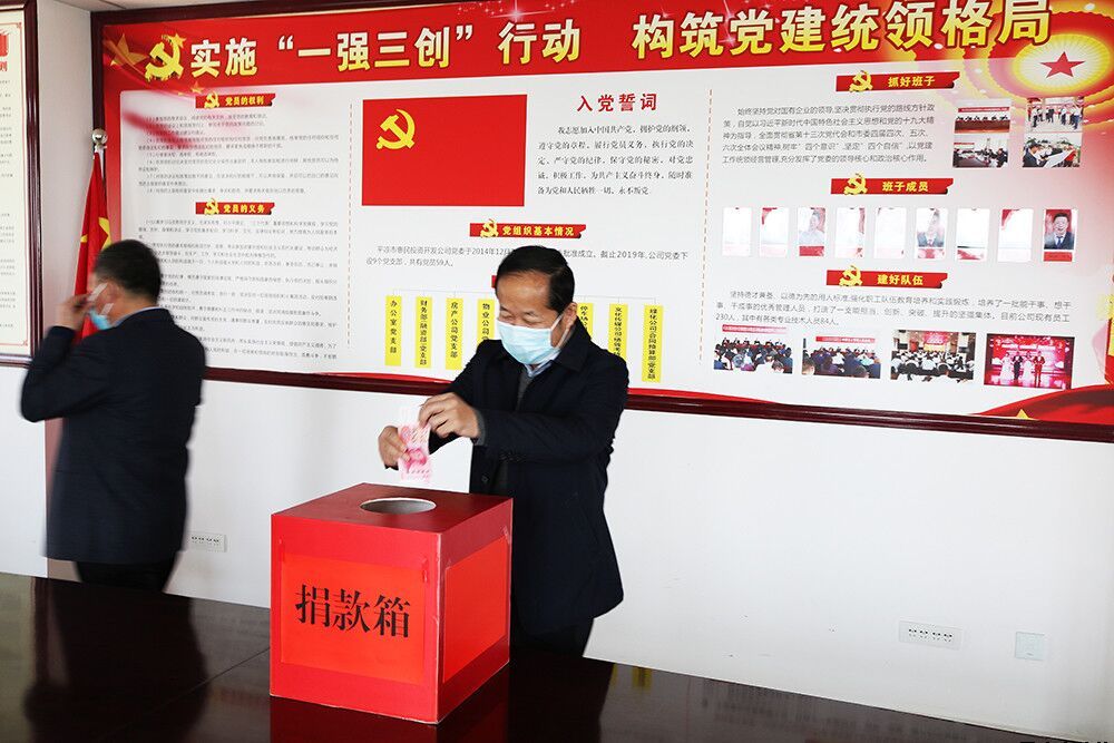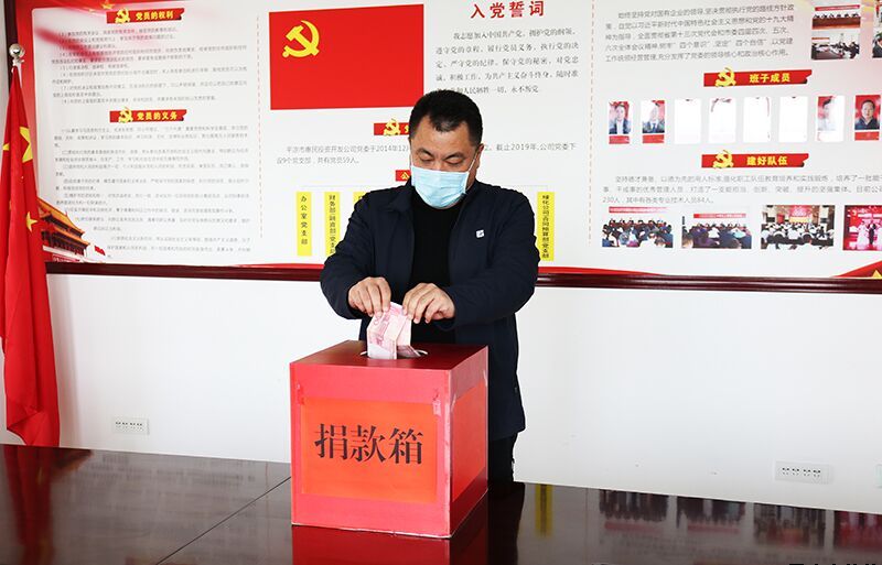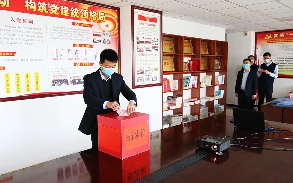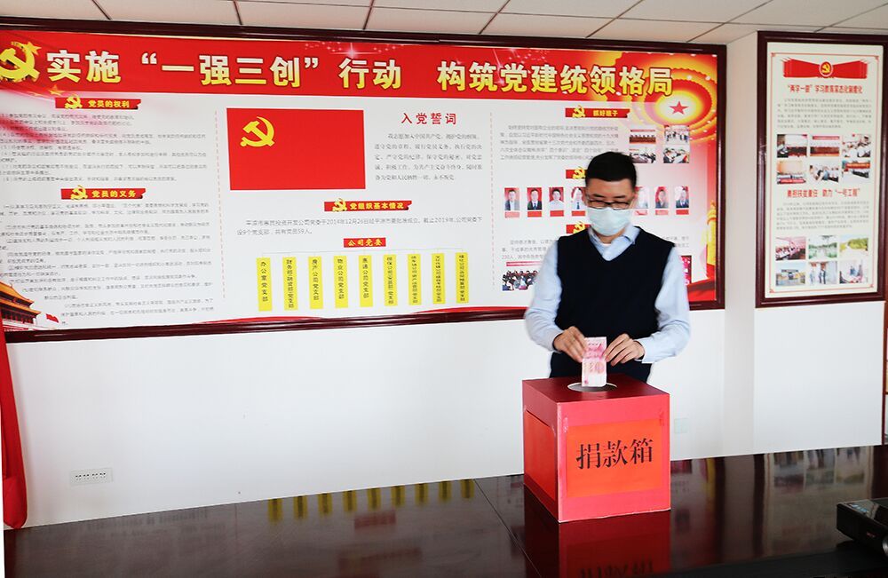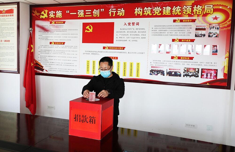 为尽可能减少人员接触,公司党委做好防护的前提下,组织了简单简短的捐款仪式。公司党委书记、董事长唐常宁,党委委员、总经理胡红训及公司全体党委班子成员带头进行了捐款。公司全体党员纷纷响应,在所在党支部积极捐款,充分弘扬“一方有难,八方支援”的传统美德,体现了广大党员“守初心、担使命”主动为抗击疫情作贡献的先锋模范作用。