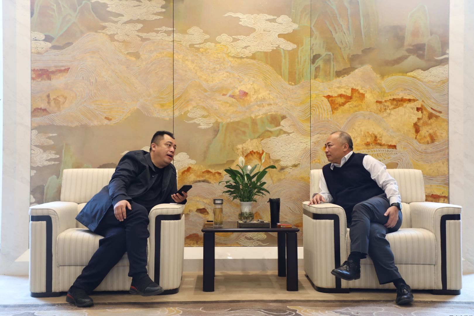 图为唐常宁与中信银行兰州分行负责人曲嵩座谈