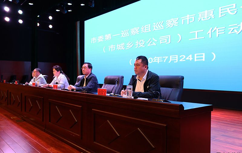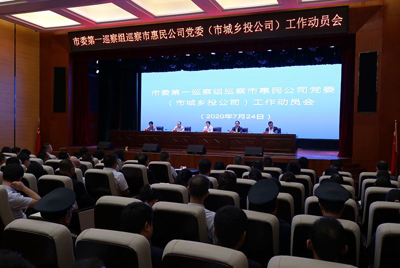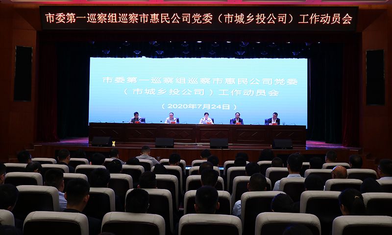 根据市委安排,2020年7月24日,四届市委第六轮巡察第一巡察组巡察市惠民公司党委(市城乡投公司)工作动员会议召开。市委第一巡察组组长刘刚作动员讲话,市委巡察工作领导小组成员、巡察办主任赵玖梅就做好巡察工作提出要求,市惠民公司党委书记、董事长唐常宁主持会议并作表态发言。市委第一巡察组副组长、联络员、成员,市纪委监委第三派驻纪检监察组负责同志及市惠民公司领导班子成员、中层干部及全体职工等共计160人参加会议。