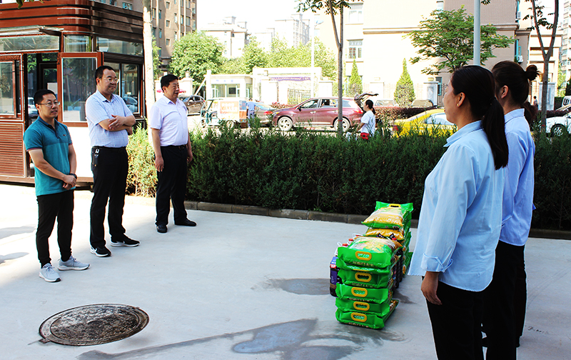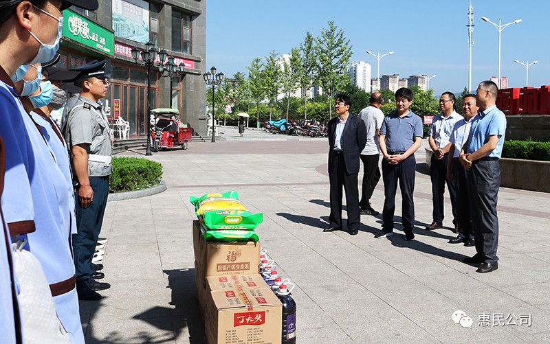 8月7日,受市惠民公司党委书记、董事长唐常宁委托,公司党委委员、总经理胡红训,副总经理魏显文、王徐周、郑忠军、马新平、柳振源,总工程师高健,总经济师王国太分组带领党委办(办公室)和工会相关负责人深入惠通公司、平凉一中项目、惠民花园物管站、御景华府、惠民大厦、新城国际物管站、柳湖路苗圃、新北嘉园物管站、法院服务中心、平凉宾馆立体停车库,向奋战在一线的基层员工送去慰问,并将公司准备的慰问品送到他们手中。