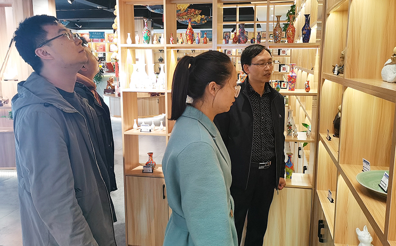 10月15日下午,文化传媒公司负责人带领全体员工前往崆峒古镇,就平凉本地特色民俗文化创意产品产业发展现状进行实地考察学习。