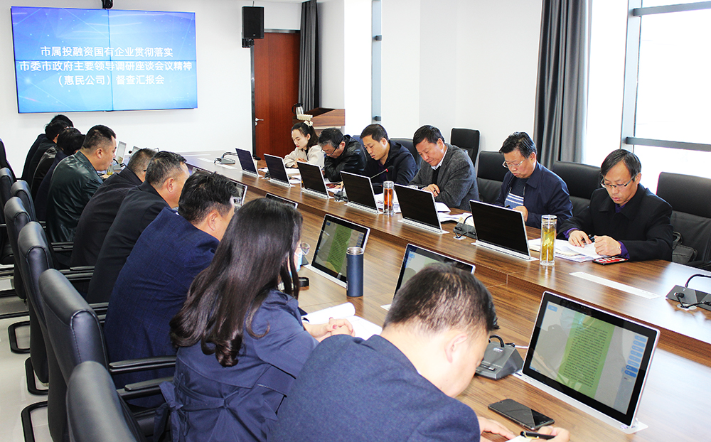 10月22日,市政府国资委党委书记、主任杜勤科带队,市委办公室督查专员庞广斌,市政府国资委党委员、副主任罗彦鹏,以及督查组成员一行6人,深入平凉城投(惠民公司)对贯彻落实市委市政府主要领导调研市属投融资国有企业座谈会议精神情况进行督查,督查以汇报会的方式进行。平凉城投(惠民公司)党委书记、董事长唐常宁参加督查汇报会。