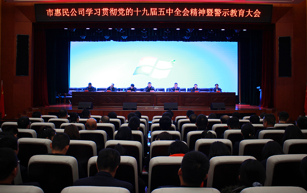 市惠民公司党委委员、总经理胡红训,副总经理王徐周、郑忠军、马新平、柳振源,全体党员、中层干部、下属公司内设机构主管和公司机关全体员工共计100多人参加会议。