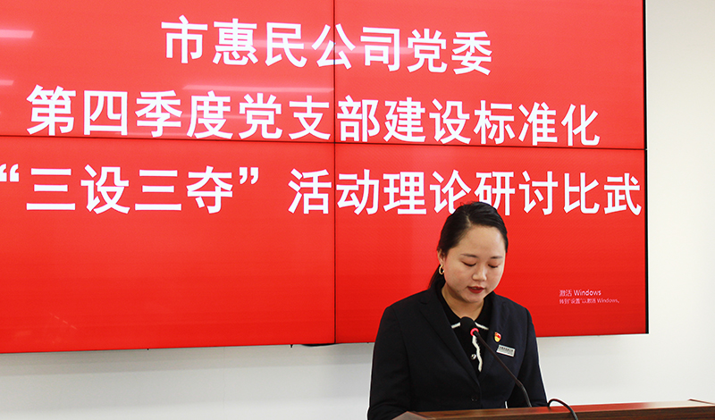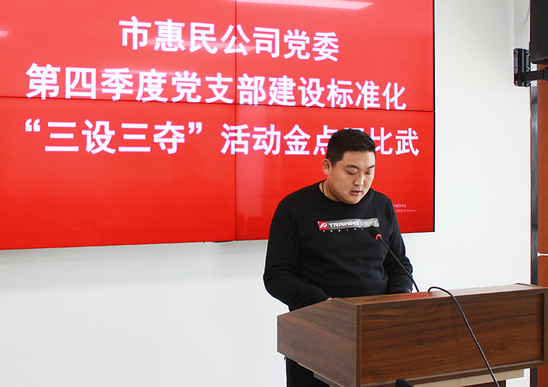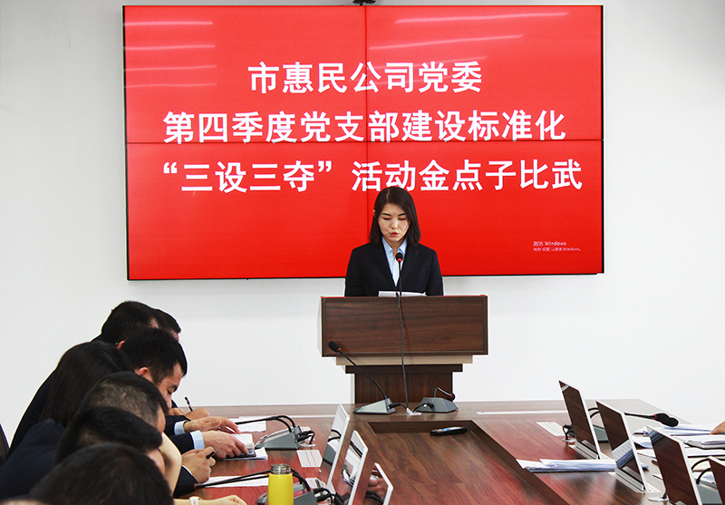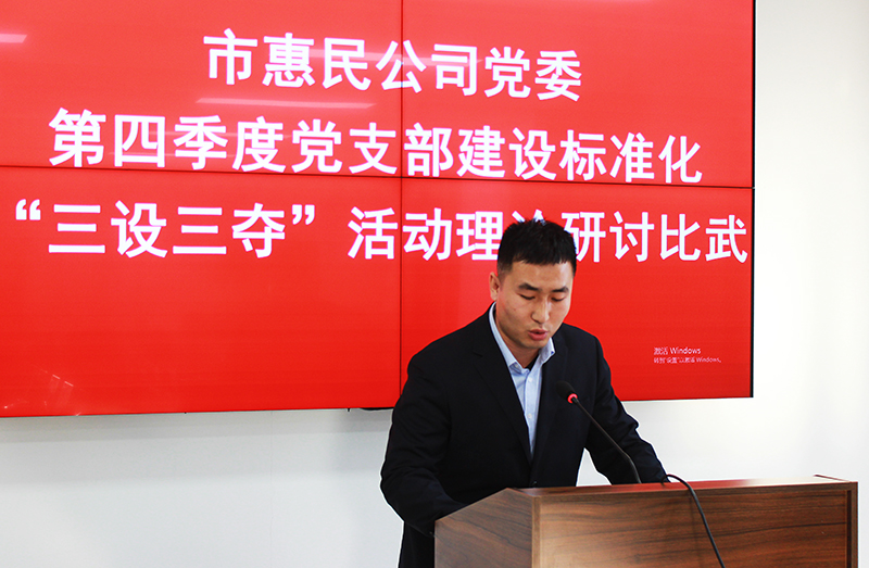 12月22日,市惠民公司党委组织开展第四季度党支部建设标准化“三设三夺”活动。活动由市惠民公司党委委员、副总经理魏显文主持,副总经理郑忠军、柳振源出席活动,中层干部及党员代表共计40余人参加活动。