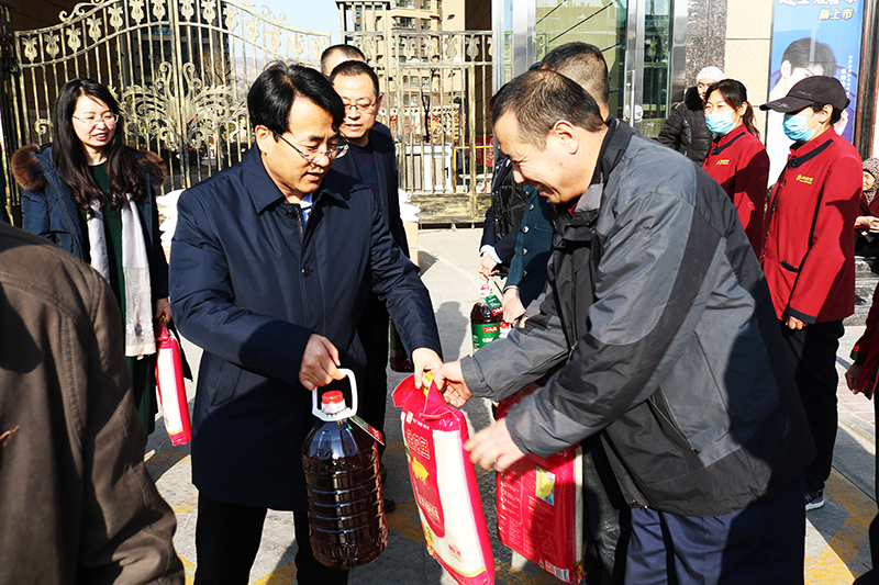 2月8日,市惠民公司党委委员、总经理胡红训,副总经理王徐周、郑忠军、马新平、王彦彦分组带领党委办(办公室)和工会负责人深入惠通公司、新城国际物管站、柳湖路苗圃、新北嘉园物管站、惠民花园物管站、市委市政府物业服务中心、法院物业服务中心、平凉宾馆立体停车库、惠民大厦物业服务中心,看望、慰问了疫情防控和春节期间坚守岗位的一线职工,向他们送去了慰问品和新年祝福。