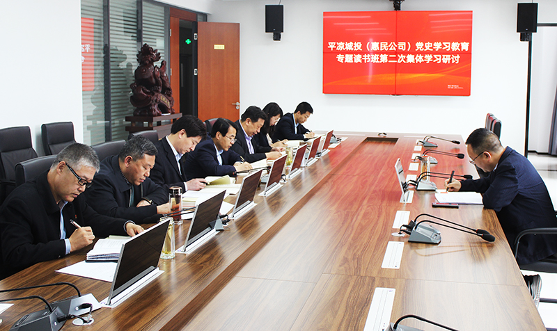 4月1日,平凉城投(惠民公司)开展党史学习教育专题读书班第二次交流研讨,公司党委委员、总经理胡红训主持会议,党委委员、副总经理魏显文、郑忠军,总经济师王国太参加会议,总工程师高健、副总经理王彦彦列席会议。