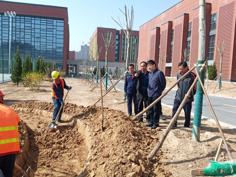 2021年4月19日,公司党委委员、副总经理魏显文对平凉一中新校区及御景华府商品房建设项目绿化施工进行了现场督查,查看了苗木质量、施工技术,听取了现场负责人对施工情况的汇报,并在御景华府项目工地召开了种植土方回填、微地形堆筑、苗木进场栽植施工现场会议。