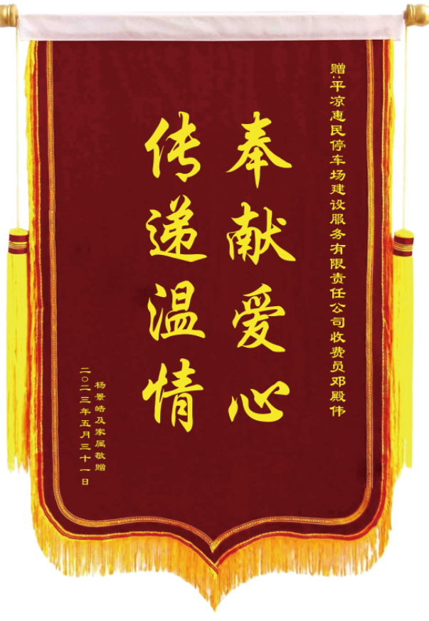 5月31日下午,一对老人和一位年轻的母亲领着大约5岁的男孩为停车场公司送来一面锦旗,对停车收费员邓殿伟助力寻亲之举表达感激之情。