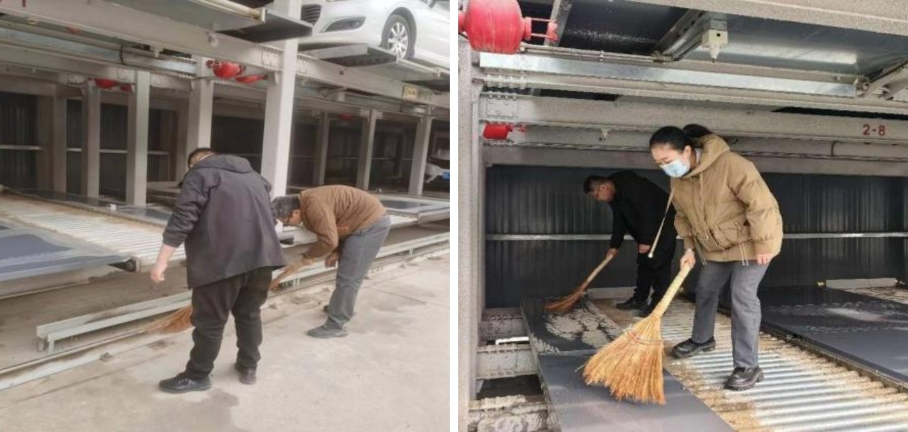 本次活动全体员工积极参与,对立体停车库停车板、通道、管理用房进行彻底清洁,同时对道路停车项目设施设备逐一擦拭,重点对安装的花箱护栏进行清洁美化。