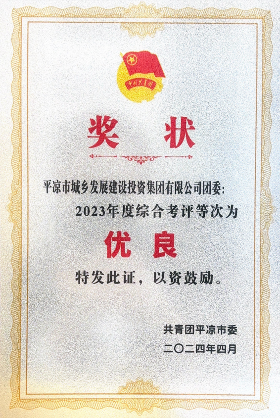 4月23日,共青团平凉市五届二次全体(扩大)会议召开,会上通报表扬了2023年度全市共青团工作先进团组织,并颁发奖牌,集团公司团委评定为2023年度综合考评优良等次。