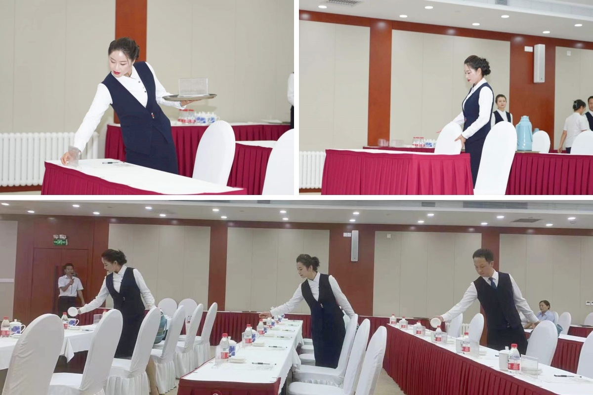 为提升会议服务质量,提高政务会议保障能力,努力打造专业化会议服务团队,近日,平凉宾馆举办了会议服务实操技能展示活动。