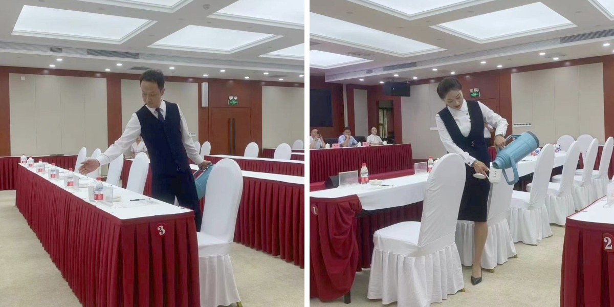 本次展示为会务从业人员提供了相互交流、相互学习、切磋技能的平台,展现了宾馆会务从业人员良好的精神面貌和精湛的服务技能,同时,激发了从业人员主动提升职业技能,争做学习型、技术型人才的积极性,营造了“比学赶超”的良好氛围。