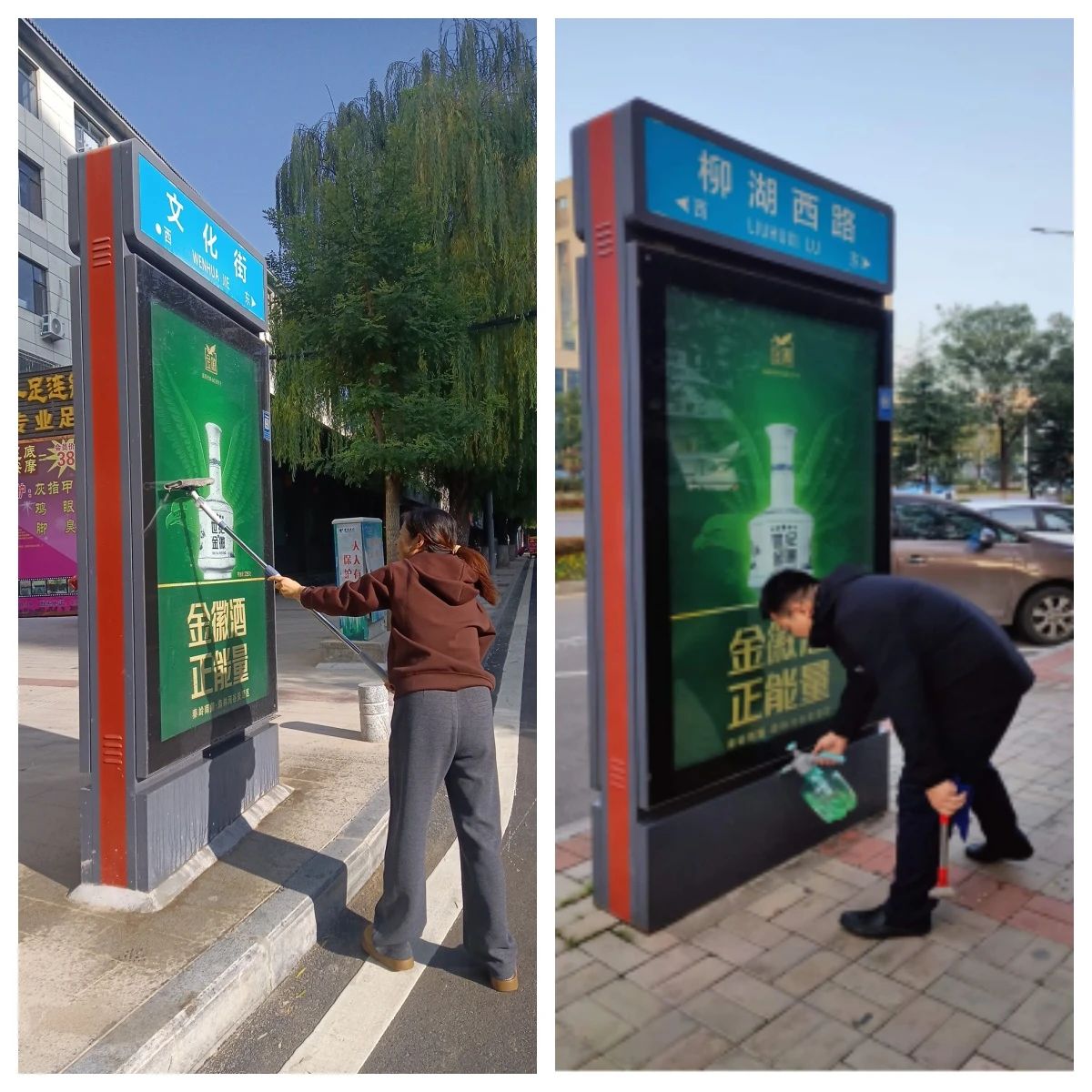 本次清洗维护活动,集中对中心城区主要街道、商业街区、交通枢纽等区域灯箱式道路指示牌进行全面清洗,对因道牙改造施工,道路铺油形成的污点、垃圾进行全面清理,确保广告设施的完好和宣传效果。