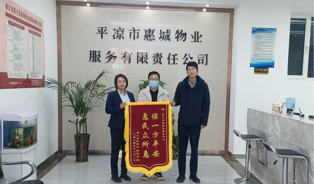 近日,物业公司崇文书苑服务中心迎来了暖心一幕。小区业主武先生将一面绣有“保一方平安 急民众所急”的锦旗送到物业工作人员手中,这不仅表达了业主对物业工作人员的肯定,更是对他们在日常工作中展现出的专业精神和敬业态度表示高度认可和诚挚感谢。