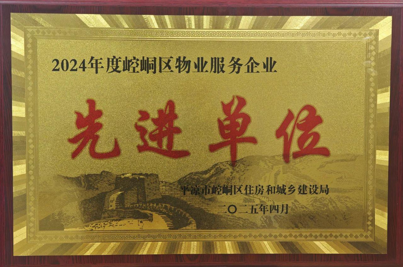 近日,惠城物业公司荣评2024年度崆峒区“物业服务企业先进单位”。