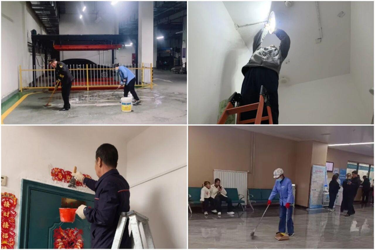 春节期间人员密集流动,各服务中心严格执行24小时值班制度,保安人员加密巡逻频次,重点排查关键区域、登记来访人车;消防控制室全天候值守,物业管理人员全覆盖巡查消防设施、电气线路等重点部位,及时消除安全隐患。针对节日期间水电气用量骤增的情况,公司提前制定应急预案、备足抢修物资,维修中心24小时在岗化身"维修卫士",做到"报修即响应、到场即处理",全力保障业主生活顺畅。保洁人员主动加码工作量,天未亮便开始清扫小区主次干道、楼道走廊等区域,定时消杀电梯轿厢与垃圾分类点,确保垃圾清运日产日清,以干净整洁的环境为业主增添浓浓"年味"。