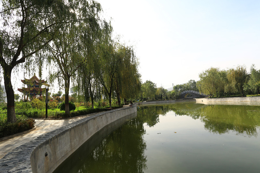 平凉中心城市东湖公园节点改造工程是2014年市委、市政府确定的中心城市重点建设项目。该项目位于拥军路以北,双桥路以西,平凉农校以东,崆峒大道以南,占地面积45.3亩。主要建设内容包括地面铺装及地下管线埋设、园林绿化、湖体驳岸改造、亭子等建筑小品建设、公园设施配套,总投资2748万元。