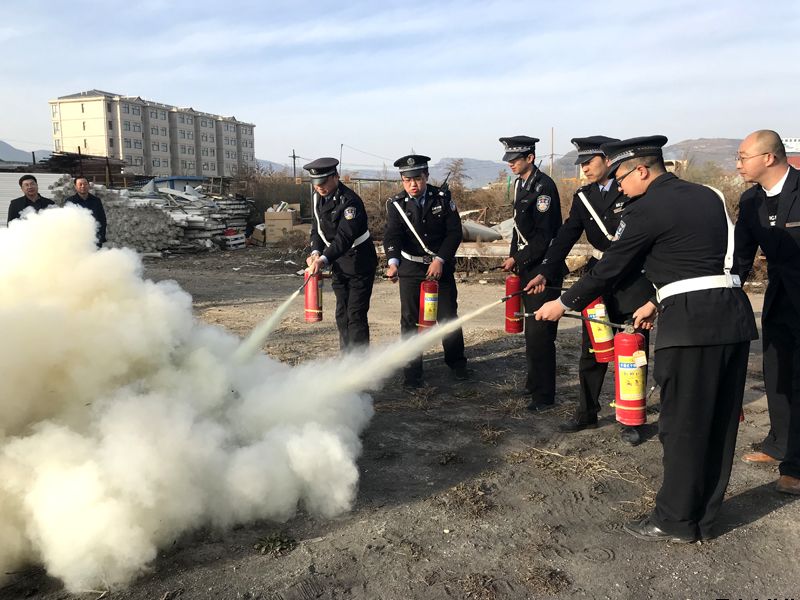 为使此次消防演练取得预期效果,惠民花园物管站根据消防应急预案和实际情况认真制定了演练方案。整个演练以模拟7号楼3单元301室业主使用电器不当引发火灾为主线展开,值班保安在巡逻中发现7号楼3单元301室窗口冒烟,立即上门查看,结果发现该住户家中起火,立即报告物管站负责人并拨打“119”报警,并在站长的指挥下启动消防应急预案,展开自救。接到通知后的工作人员迅速向着火点集结,形成第一灭火力量,并及时疏散现场人群,保安人员设置警戒线,维护现场秩序,确保救援通道畅通。随后,物管站人员进行了灭火实战演练,演练前,物管站负责人讲解了灭火操作的关键步骤和细节,在锅炉房空地点燃了两堆可燃物,大火熊熊燃烧,工作人员携干粉灭火器对可燃物进行了灭火,火警得以顺利解除,演练圆满完成。