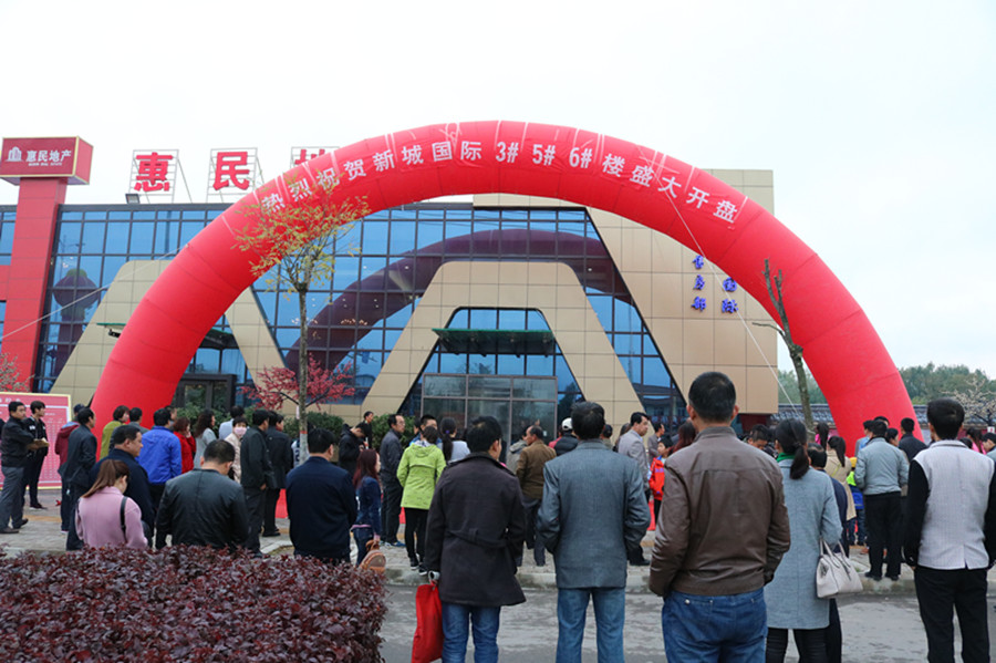 10月15日,新城国际3# 5# 6#楼盘盛大开盘。鲜艳的拱门、精致的花篮、瑰丽的红毯、优美的音乐,把新城国际营销中心装点得格外醒目,现场洋溢着喜庆的气息。从早上7点开始,客户们开始络绎不绝赶到,不到8点,现场便排起了长长的队伍。