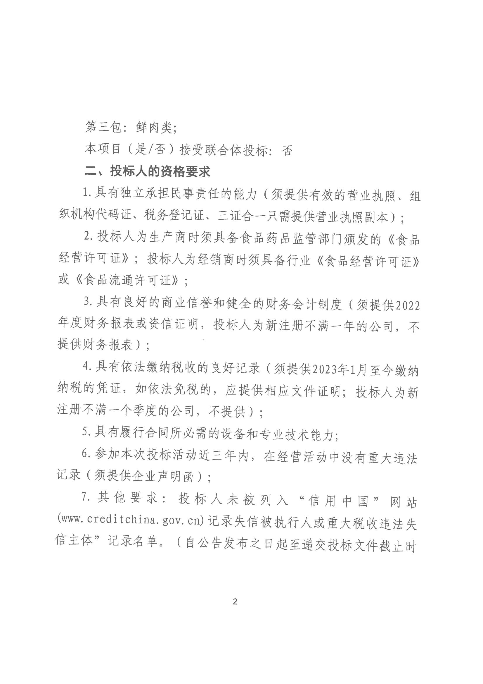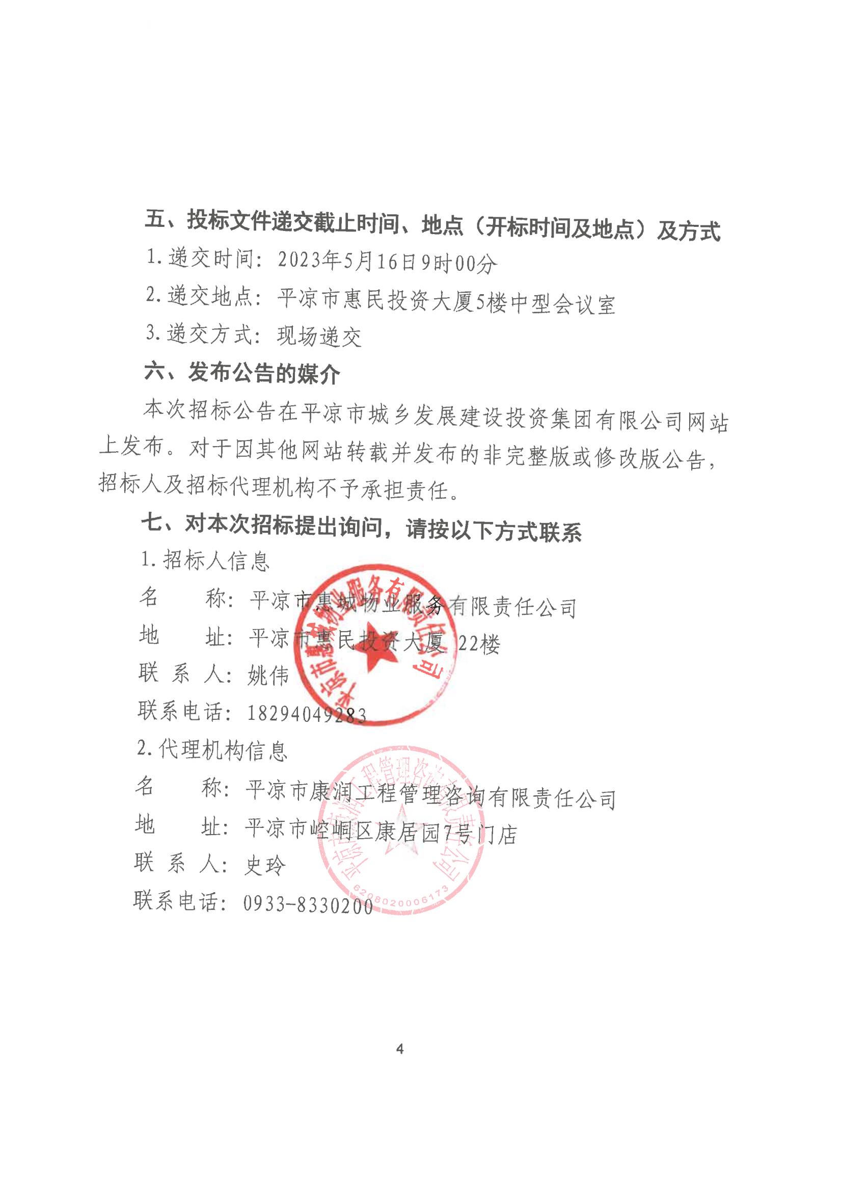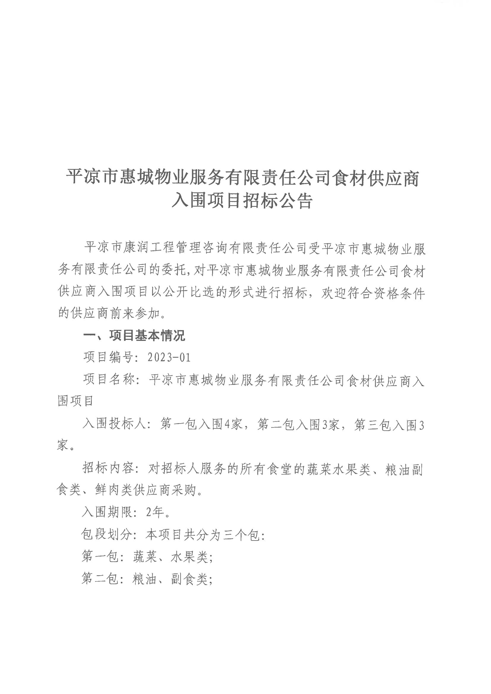 平凉市惠城物业服务有限责任公司食材供应商入围项目招标公告